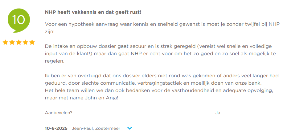 U wilt nu uw hypotheek afsluiten bij uw eigen bank, zoals ING Bank, Rabobank, ASN Bank of ABN Amro. Maar u kunt pas over een paar weken terecht bij uw bank, zo lang kunt en wilt u niet wachten! Met een spoedhypotheek bent u meteen aan de beurt. Bovendien is de kans groot dat u via NHP alsnog en snel uw hypotheek bij uw eigen bank kunt afsluiten. Althans, als u dat wilt.